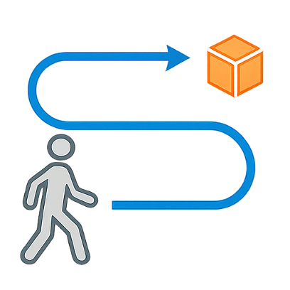 Computes the minimum Euclidean distance from the agent's connected navigable floor region to the target mesh, vertically translated by \( h_{\text{arm}} \), and validated against the maximum reach radius \( r_{\text{arm}} \).