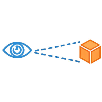 Determines if the target object is in the agent's line of sight, accounting for occlusion. \(\mathcal{P}_{\text{vis}}\) casts multiple rays from the agent's posture-adjusted eye position \( e_y \) to keypoints on the target's bounding box and computes a visibility ratio.